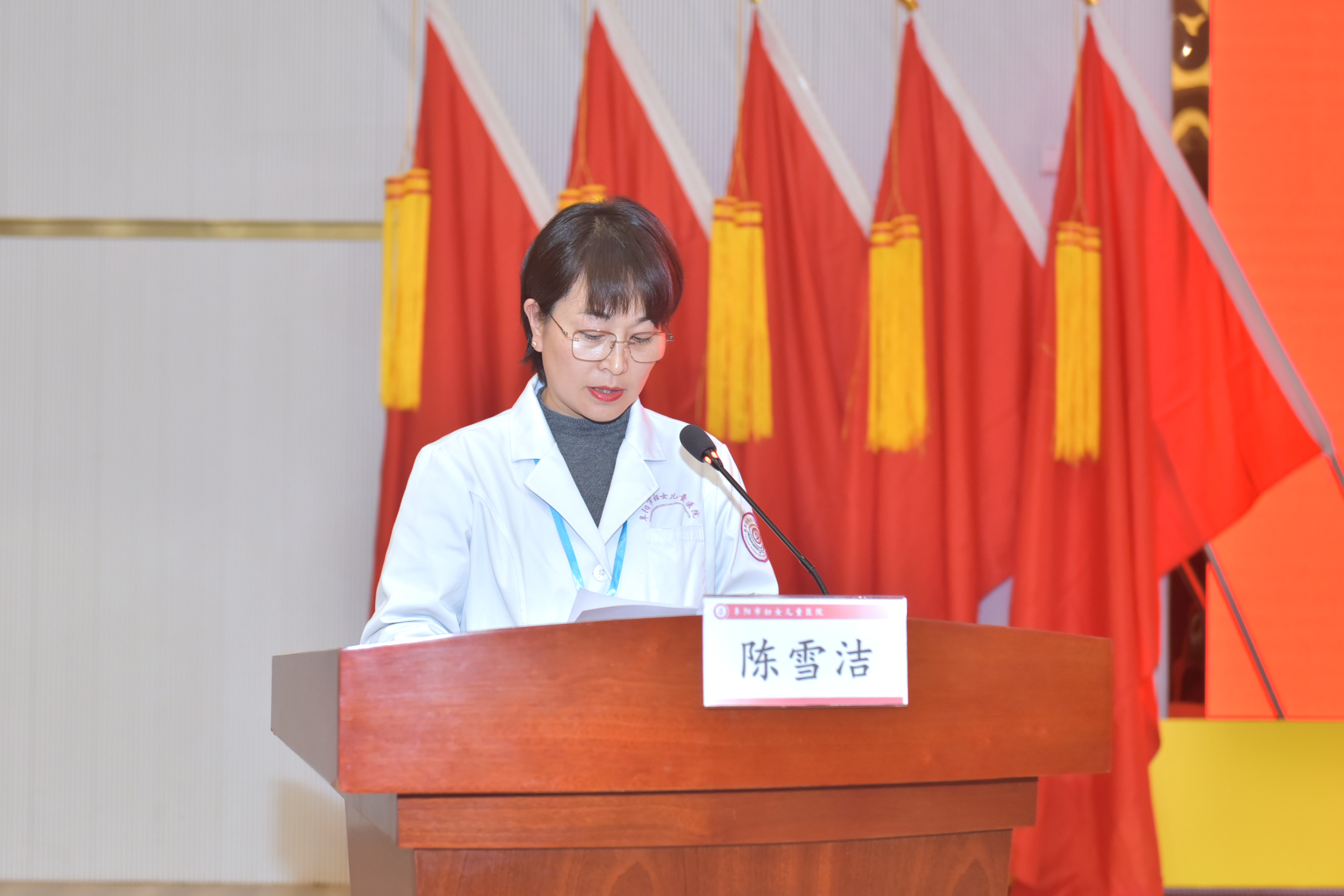 财务部主任陈雪洁作《阜阳市妇女儿童医院2025年财务工作报告及2026年预算》(草案)