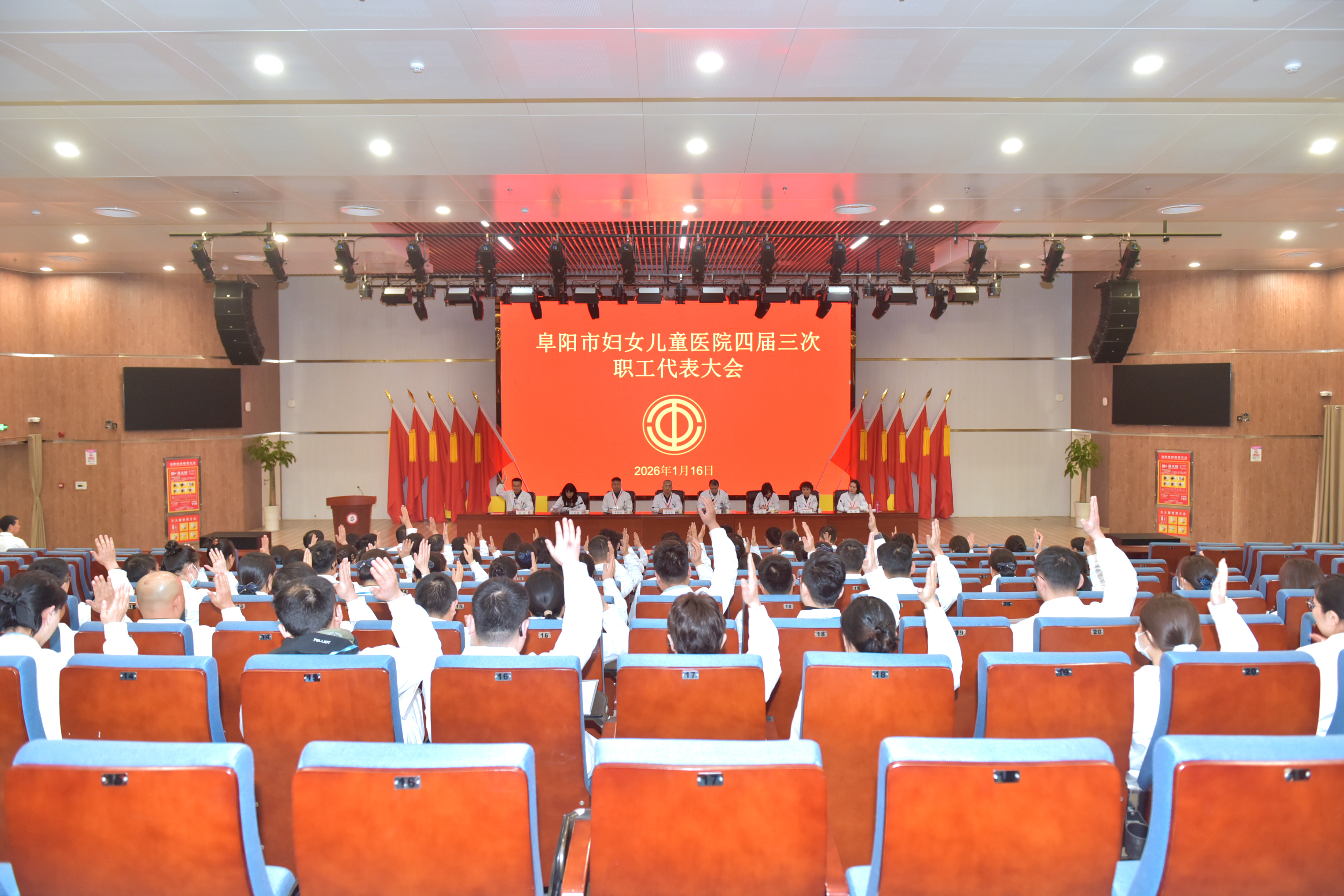 2026年1月16日,阜阳市妇女儿童医院四届三次职工代表大会在院学术报告厅顺利召开,院党委书记李忠民、院长江乃良、纪委书记李国成、党委委员王莉、总会计师白韩梅、妇联主席陈书红、团委书记张颖及工会委员出席会议。大会由工会主席邵坤主持。